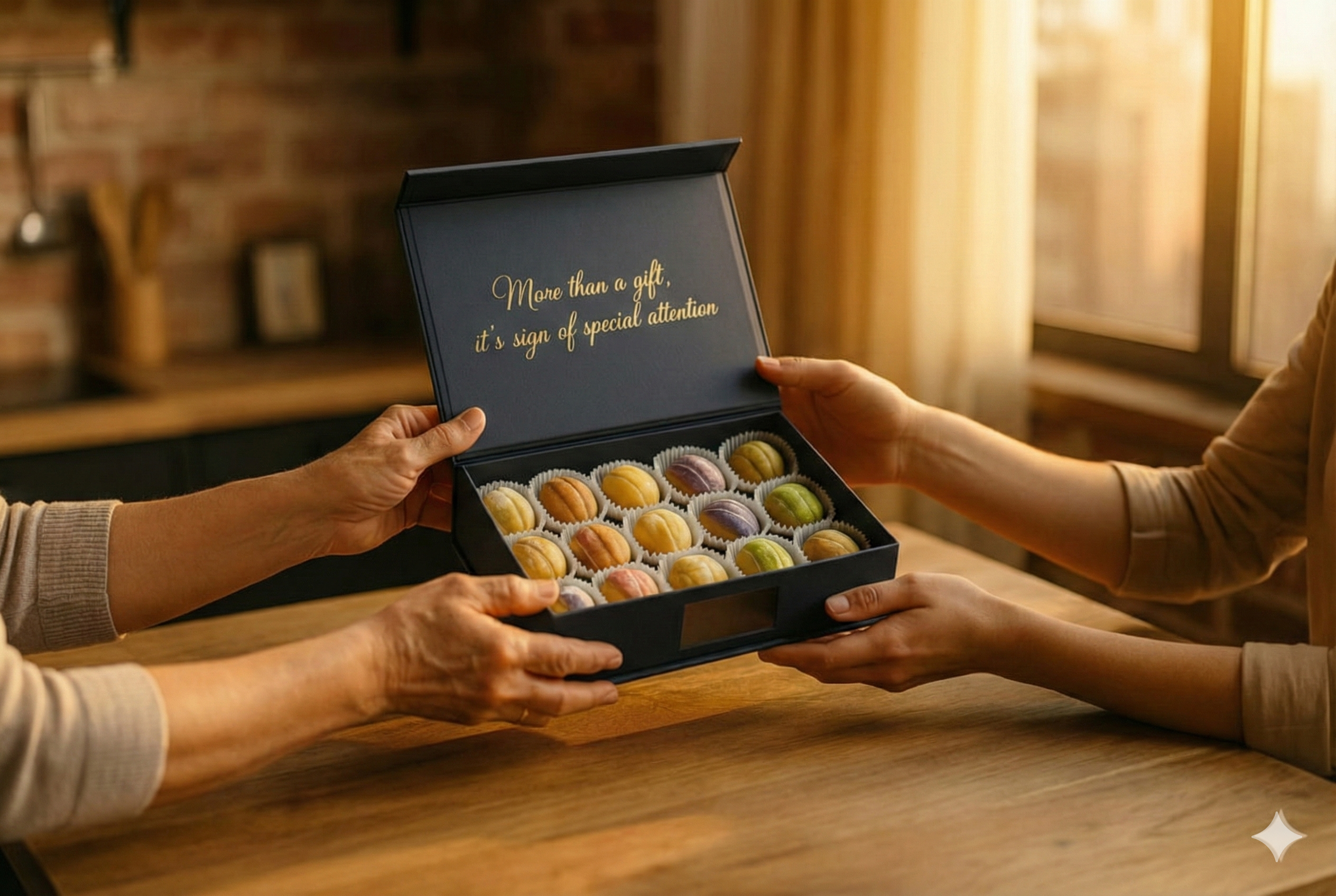 It's perfect. Each box is designed to impress — from the premium packaging to the golden cookies inside. You can also add a handwritten note at checkout.